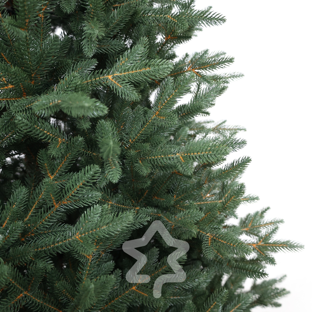 Kanadische Fichte 100 % 210 cm zeichnet sich durch eine elegante Silhouette und einen klassischen Look und 100% 3D‑PE‑Nadeln, die von echten kaum zu unterscheiden sind aus.