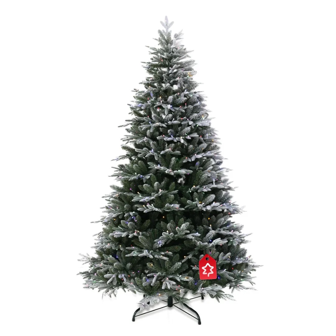Schneebedeckte Fichte 600 LED 210 cm zeichnet sich durch eine elegante Silhouette und einen klassischen Look und einem dezenten Schneeeffekt, der sofort winterliche Stimmung zaubert aus. Passt perfekt in moderne wie auch klassische Interieurs. Die LED‑Beleuchtung mit 600 Dioden sorgt für ein sanftes, angenehmes Licht – ganz ohne Lampen wechseln.