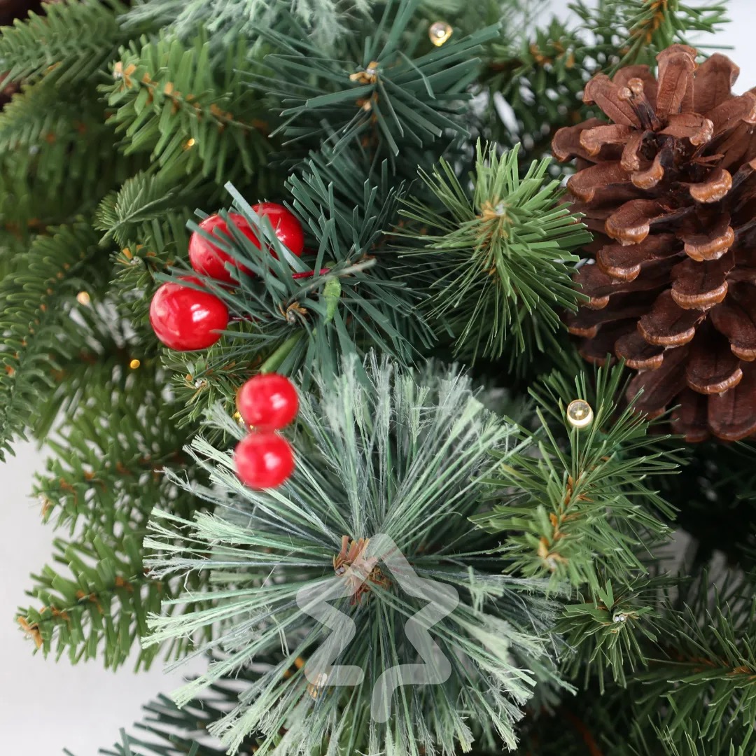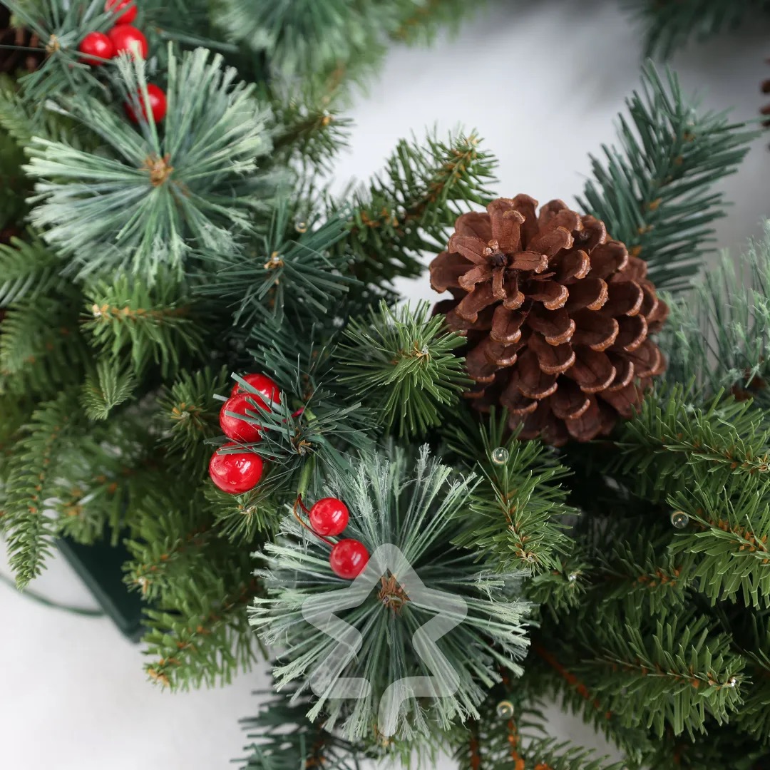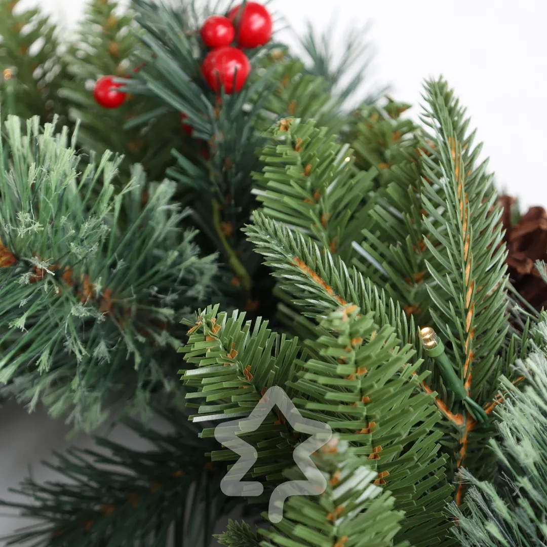 Weihnachtskranz Dekoriert 50 LED 60 cm in klassischer Ausführung ist eine schöne Dekoration für Tür, Tisch oder Fenster. Dichte Nadeln und hochwertige Verarbeitung halten viele Saisons. Die LED‑Beleuchtung mit 50 Dioden sorgt für ein sanftes, angenehmes Licht – ganz ohne Lampen wechseln.