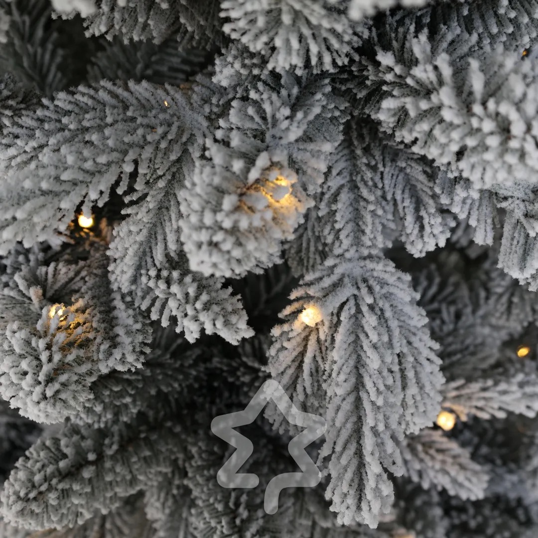 Weiße Fichte 350 LED 180 cm zeichnet sich durch eine elegante Silhouette und einen klassischen Look und einem dezenten Schneeeffekt, der sofort winterliche Stimmung zaubert aus.